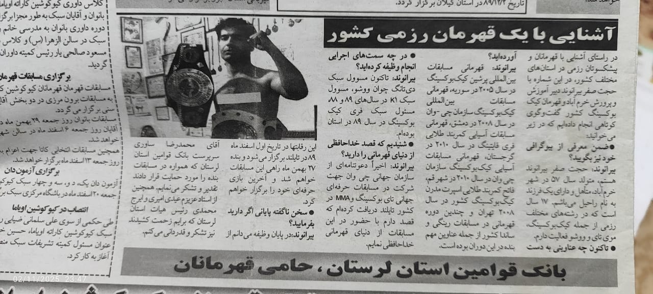 دارنده چهار کمربند طلایی کشوری در رشتههای رزمی مختلف